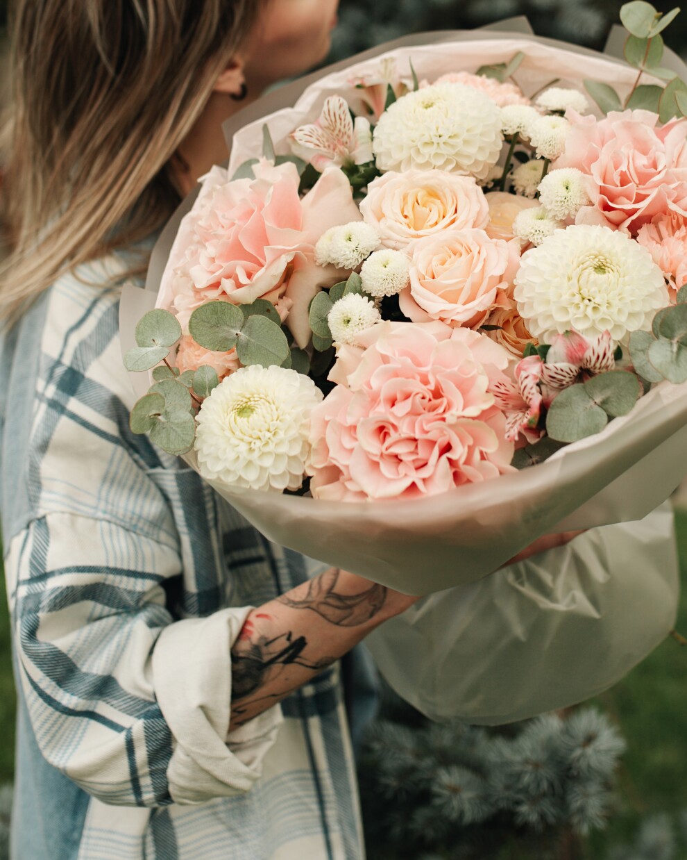 Природа живая и уникальная, поэтому создать два абсолютно одинаковых букета невозможно. Оттенки и форма цветов могут немного отличаться от фото, но мы гарантируем, что сохраним гамму, стиль и основной состав вашего букета