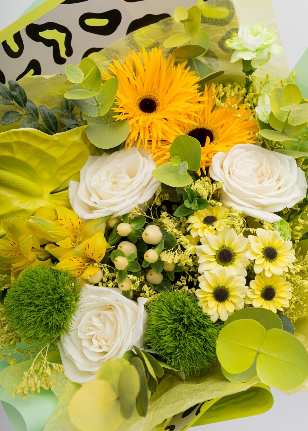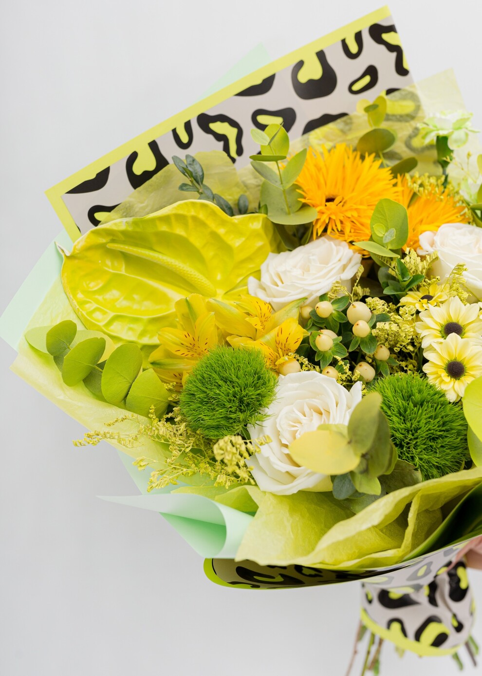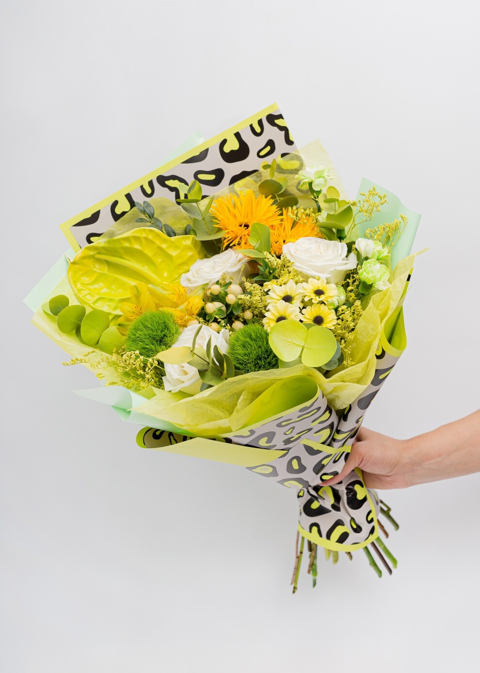Этот букет - настоящий визуальный взрыв и манифест современного стиля. Мы соединили дерзкий неоновый принт «под шерсть барса» с максимально яркой природной палитрой, чтобы создать композицию, которую невозможно не заметить!