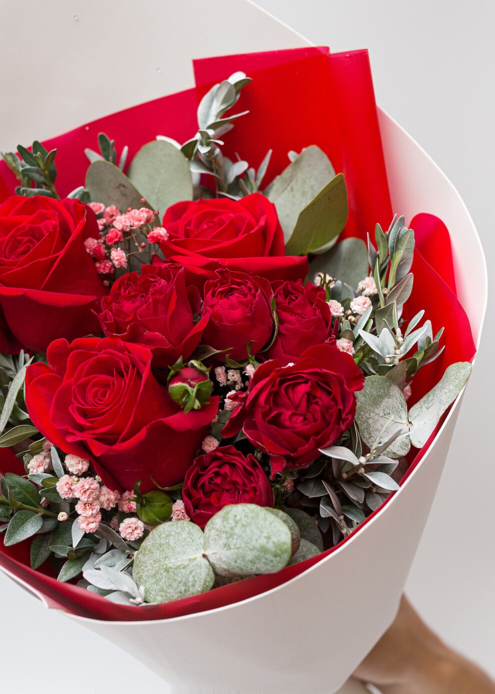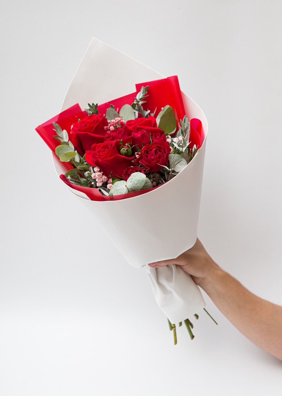 Букет-кулёк "красный в белом" купить с доставкой в Москве - цена от 2650 руб. ₽ | The Лопух ✿