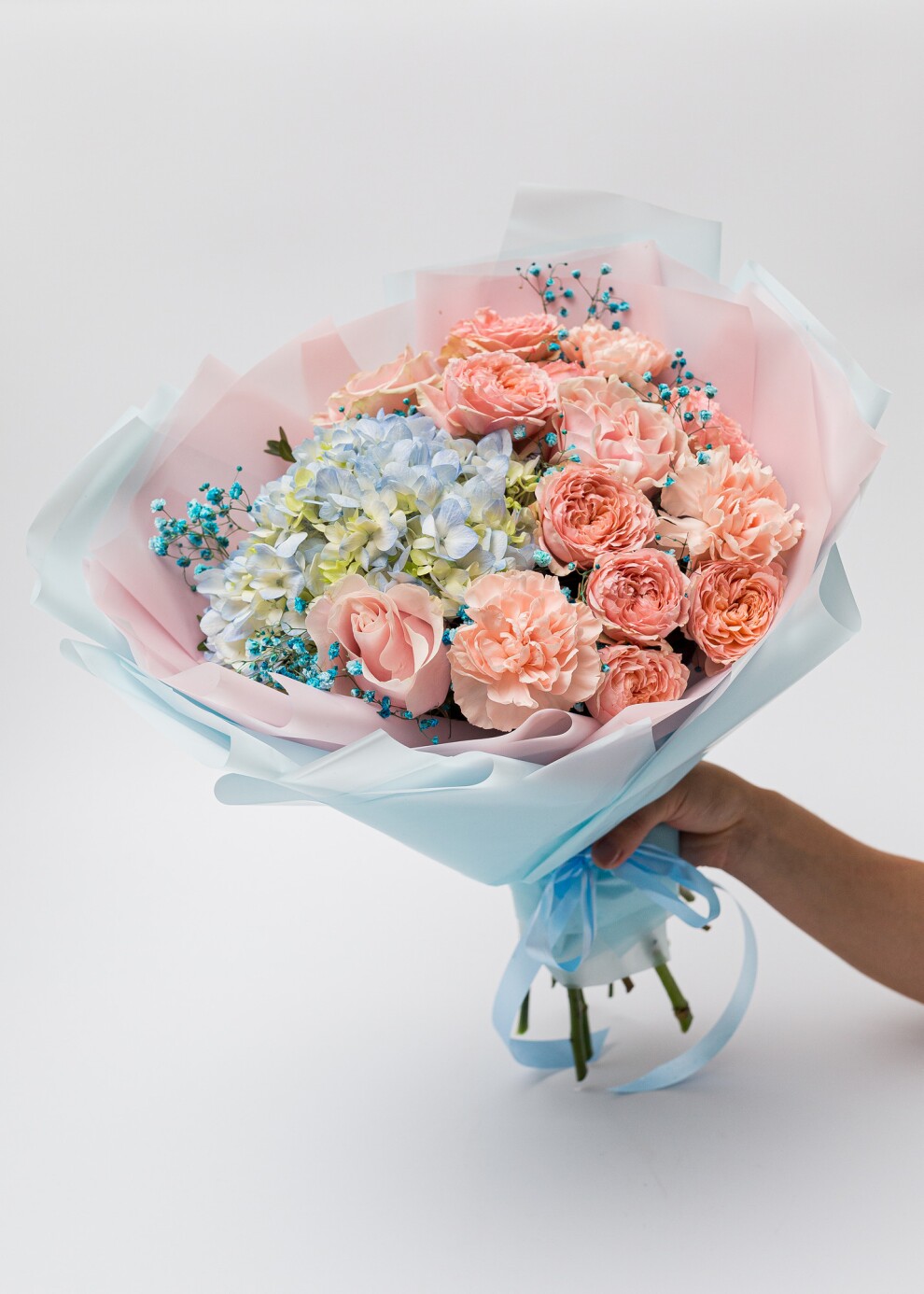 Лёгкий и воздушный сборный букет с гортензией