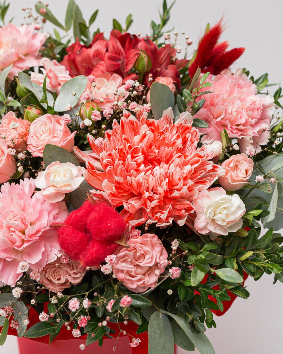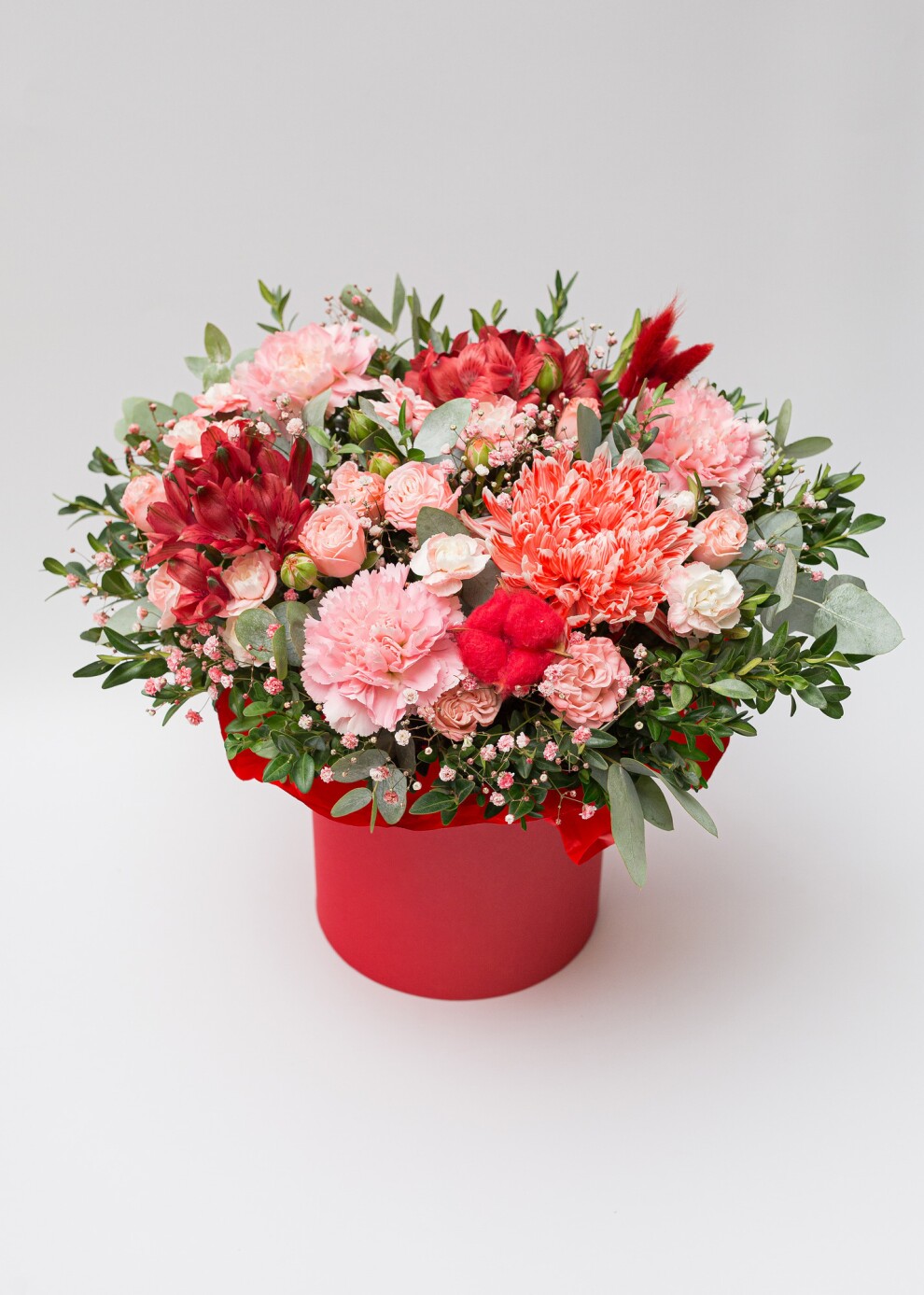 Яркое красно-алое сочетание в шляпной коробке