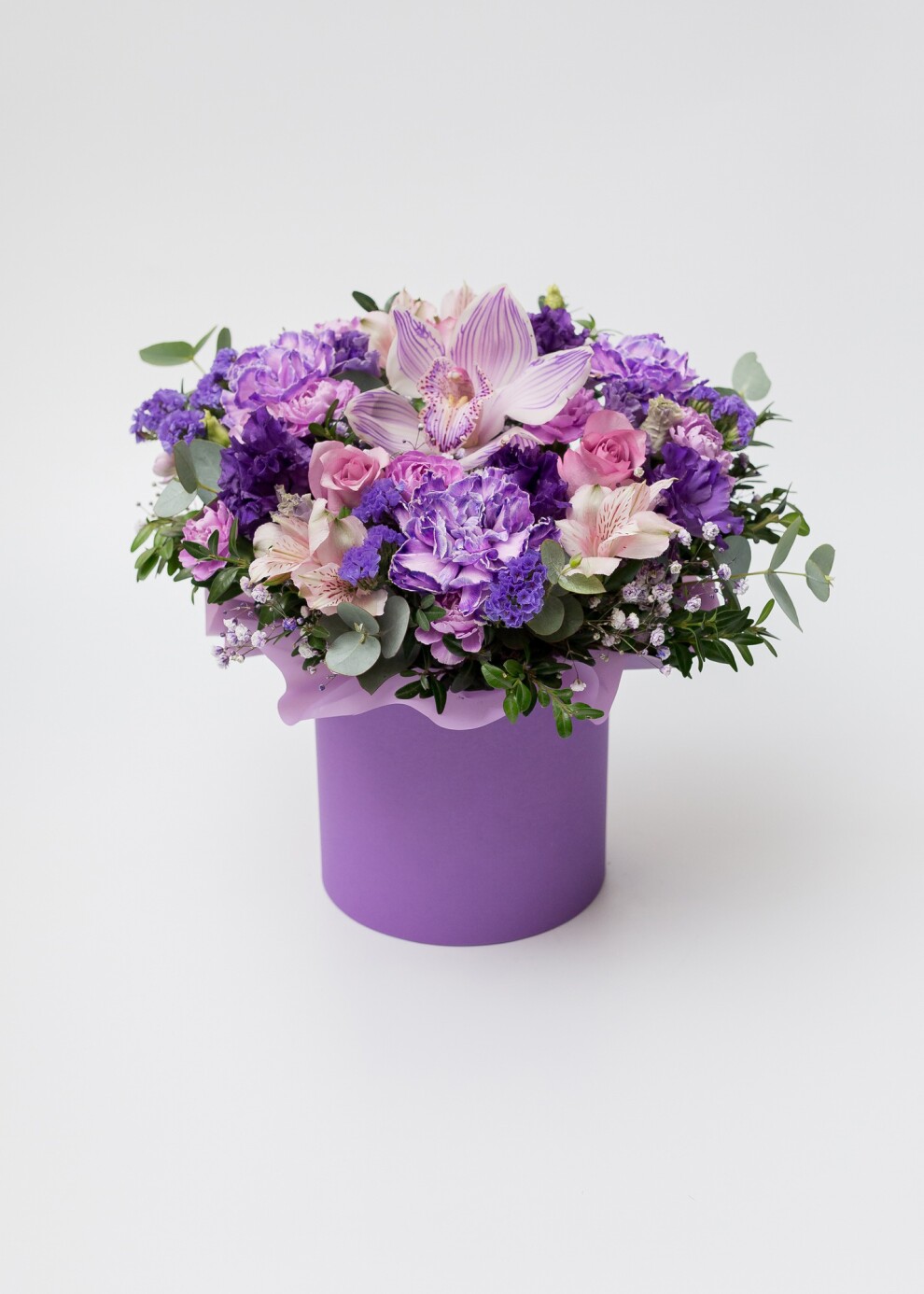 Яркое фиолетовое сочетание в шляпной коробке