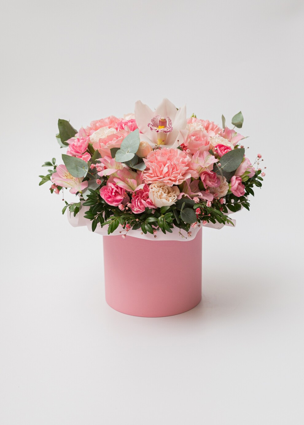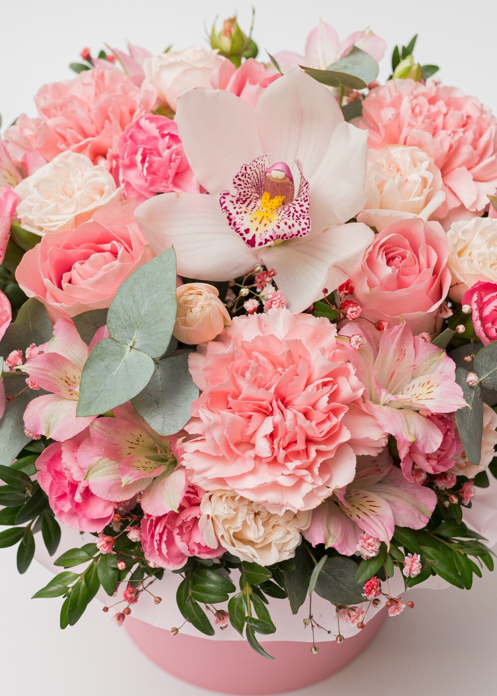 Классическое бело-розовое сочетание в шляпной коробке