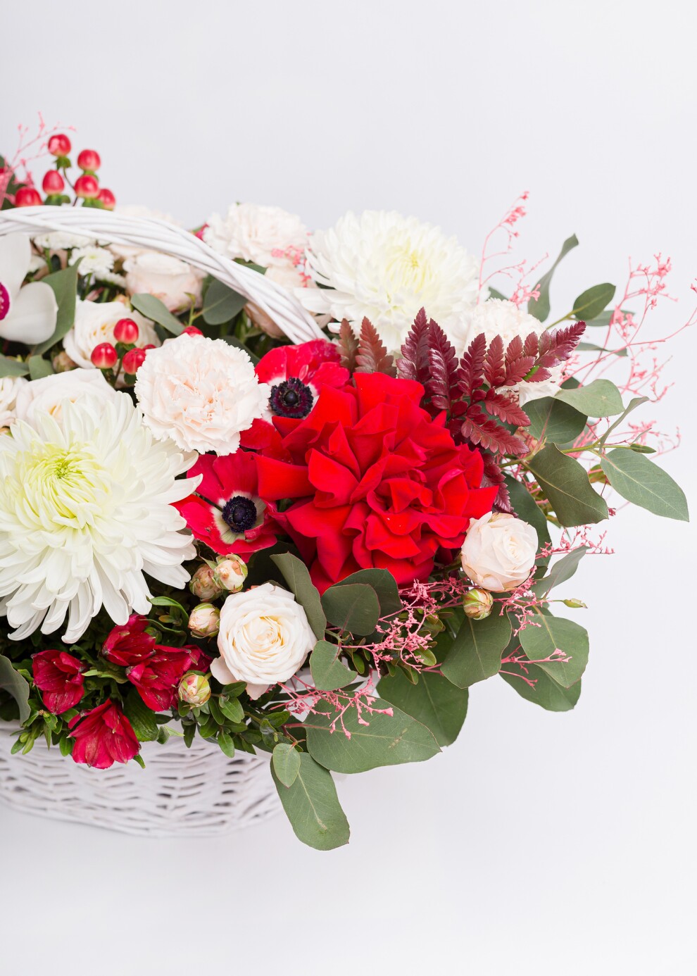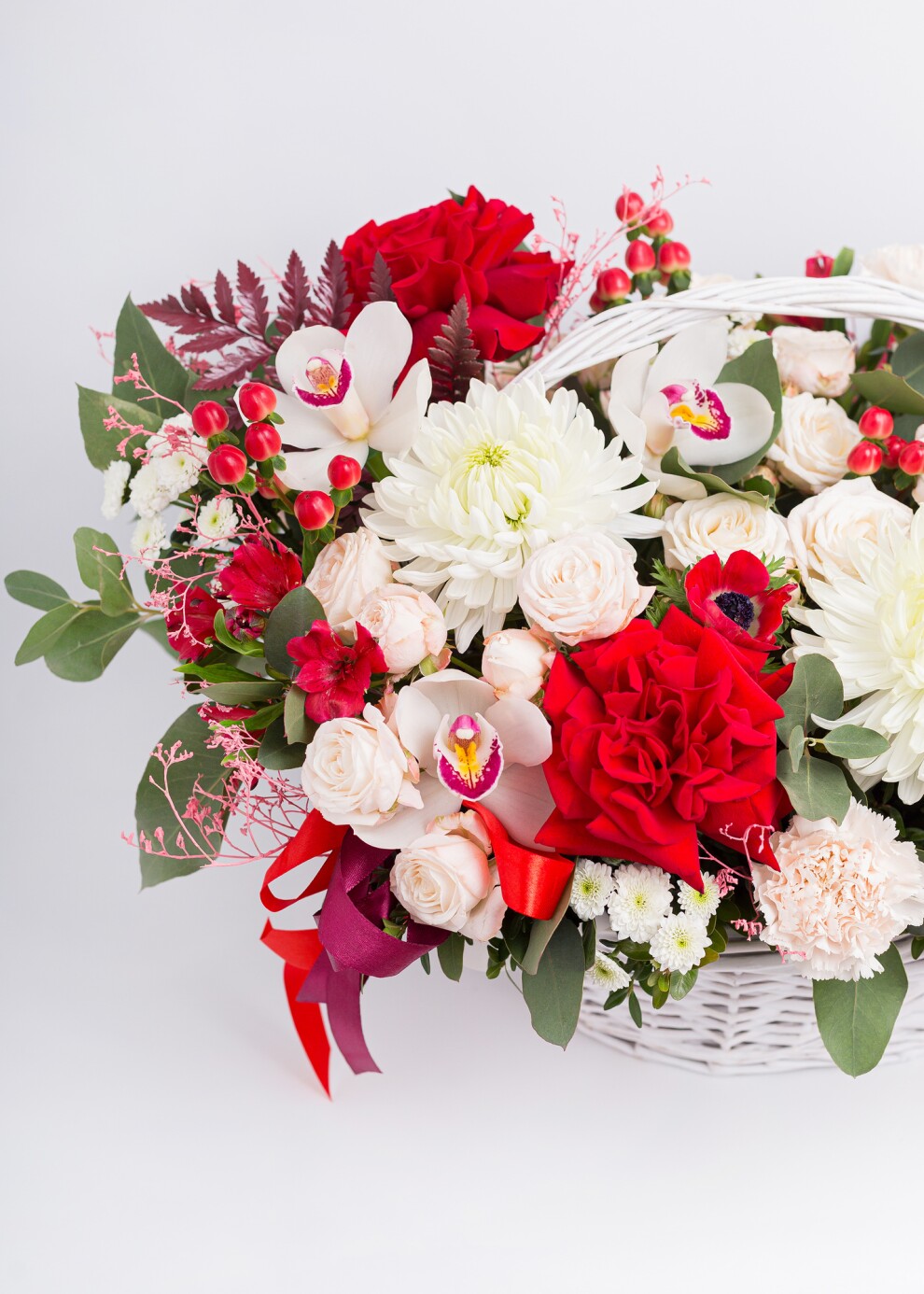 Красно-белая корзина — это классическое и всегда актуальное сочетание, символизирующее страсть, уважение и чистоту намерений. Эта композиция построена на эффектном контрасте, который никогда не выходит из моды и всегда производит неизгладимое впечатление