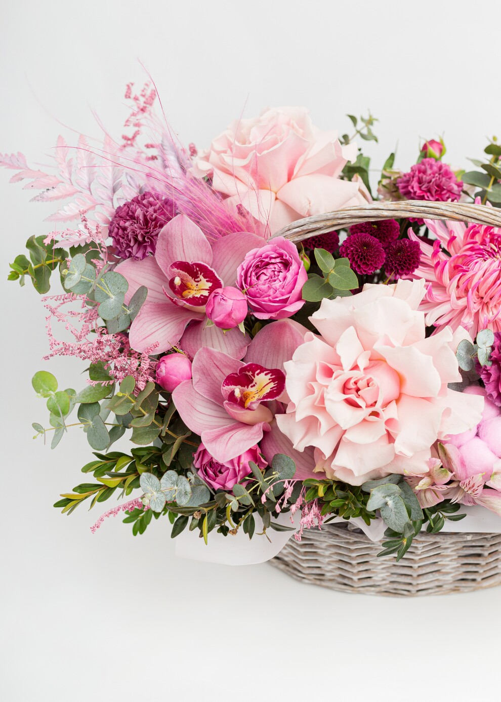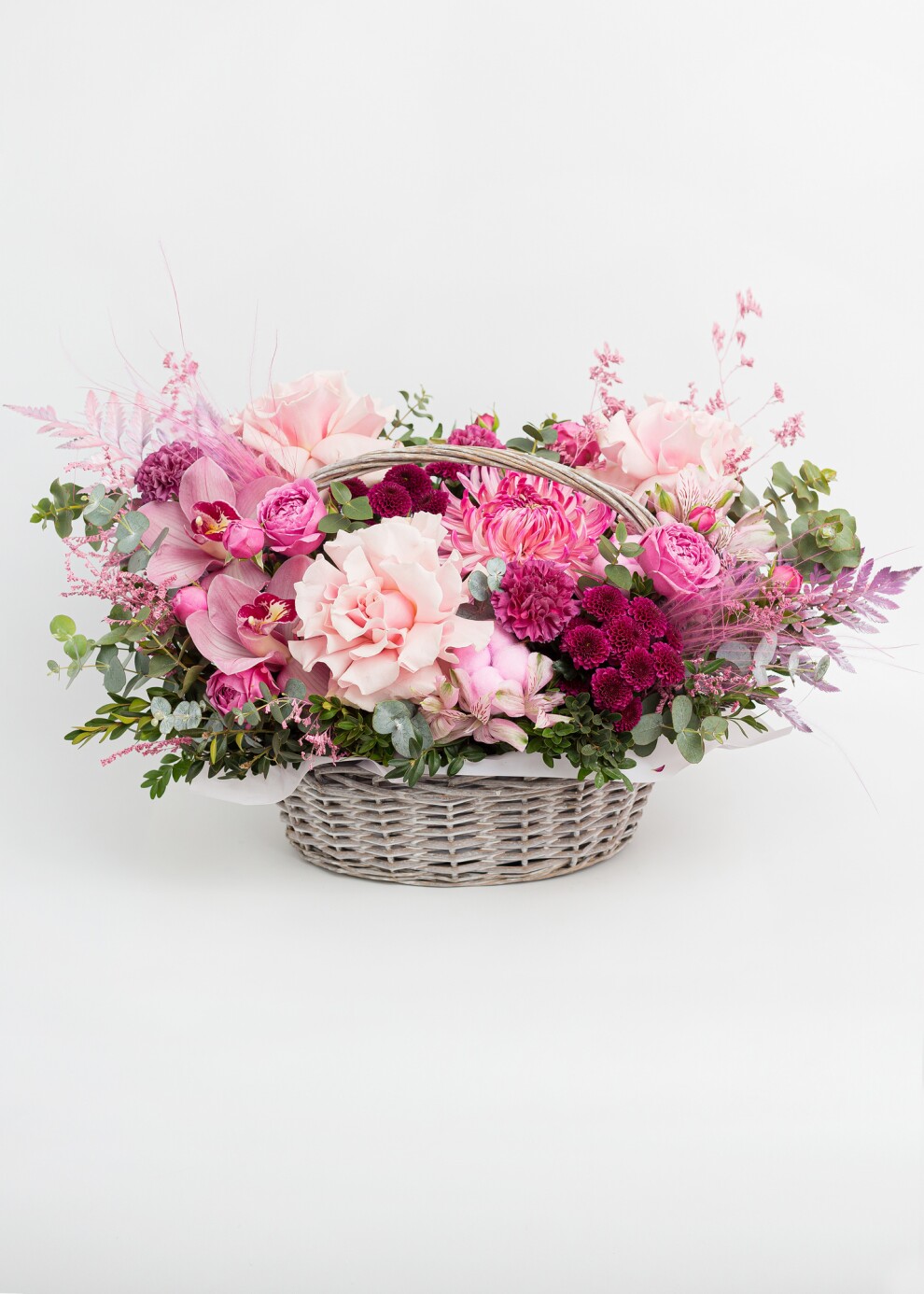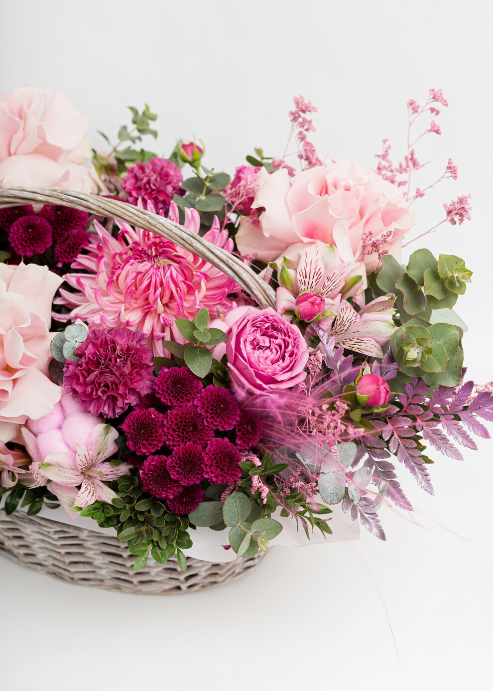 Представляем вашему вниманию соблазнительную и яркую корзину, вдохновленную богатством и сочностью летних ягод. Эта композиция в насыщенной малиново-клюквенной палитре наполнит атмосферу энергией, страстью и теплом