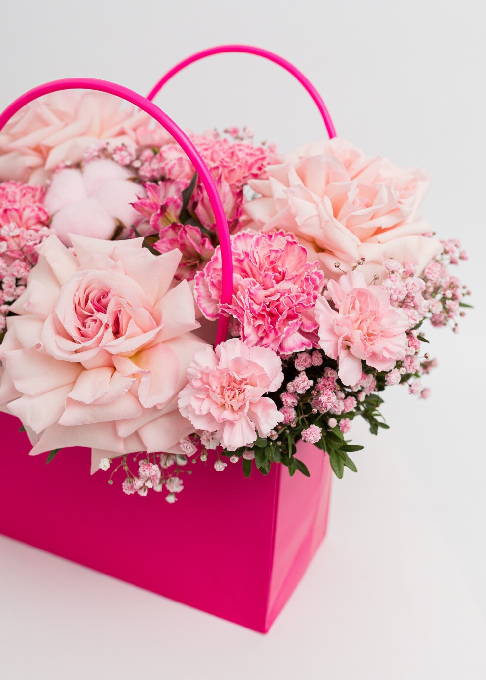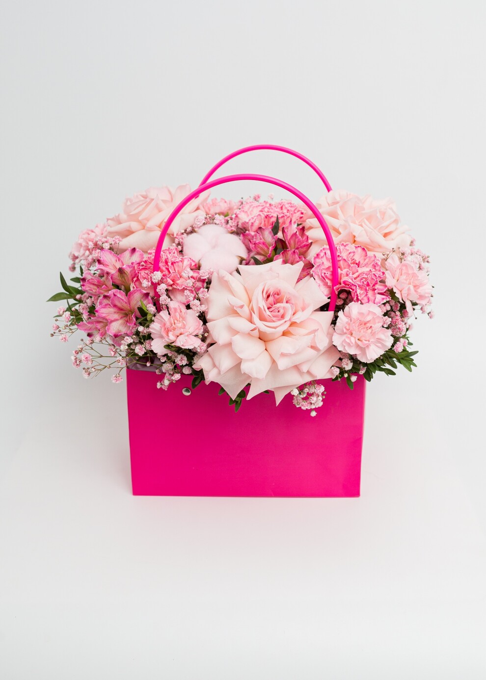 Цветочная композиция в яркой розово-малиновой гамме
