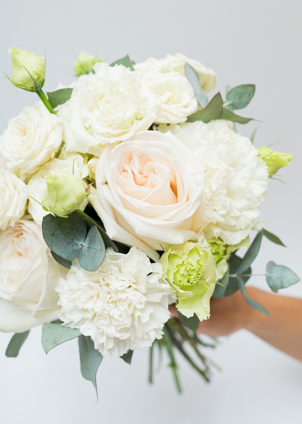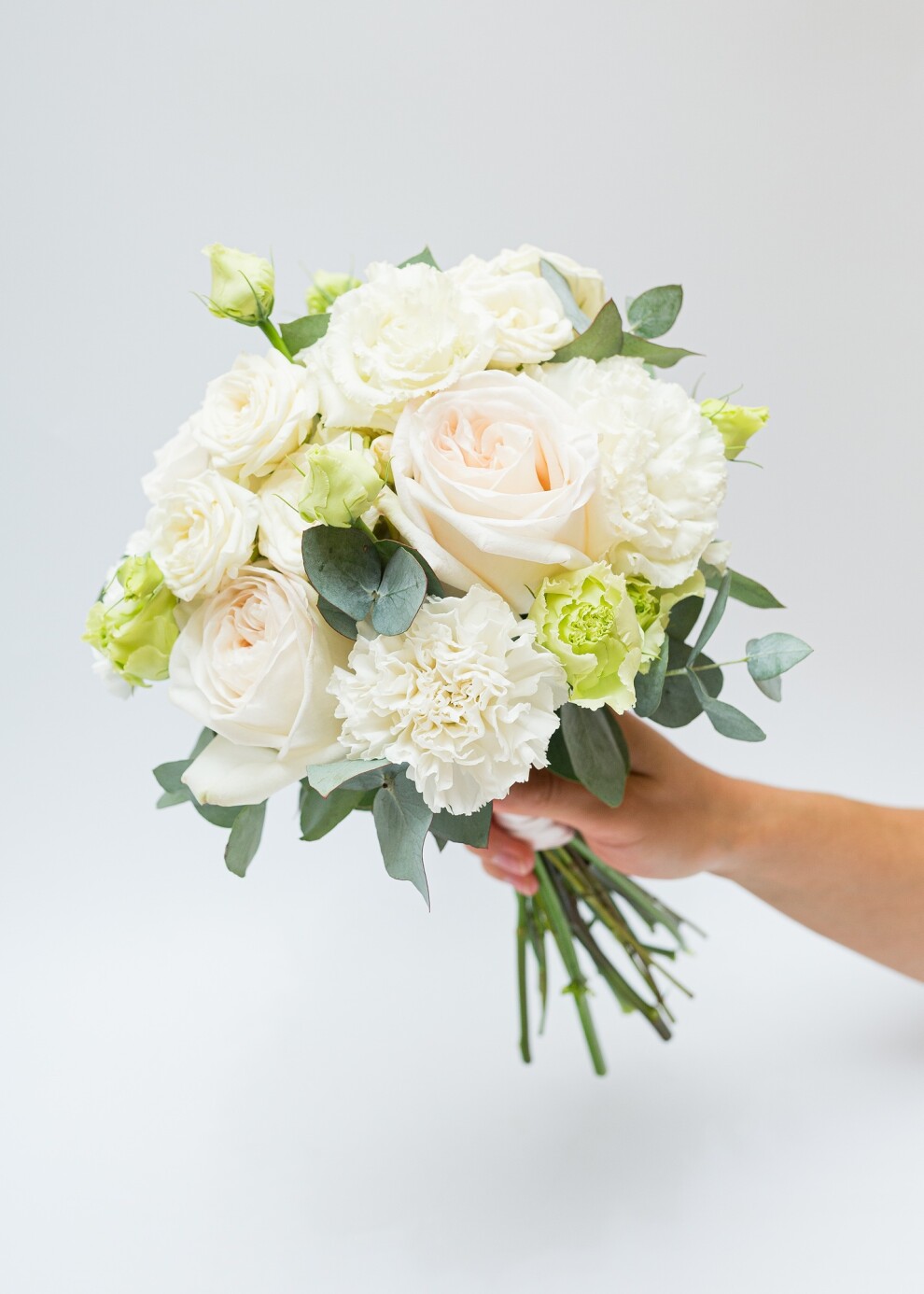 Букет невесты в классической белой гамме с эвкалиптом
