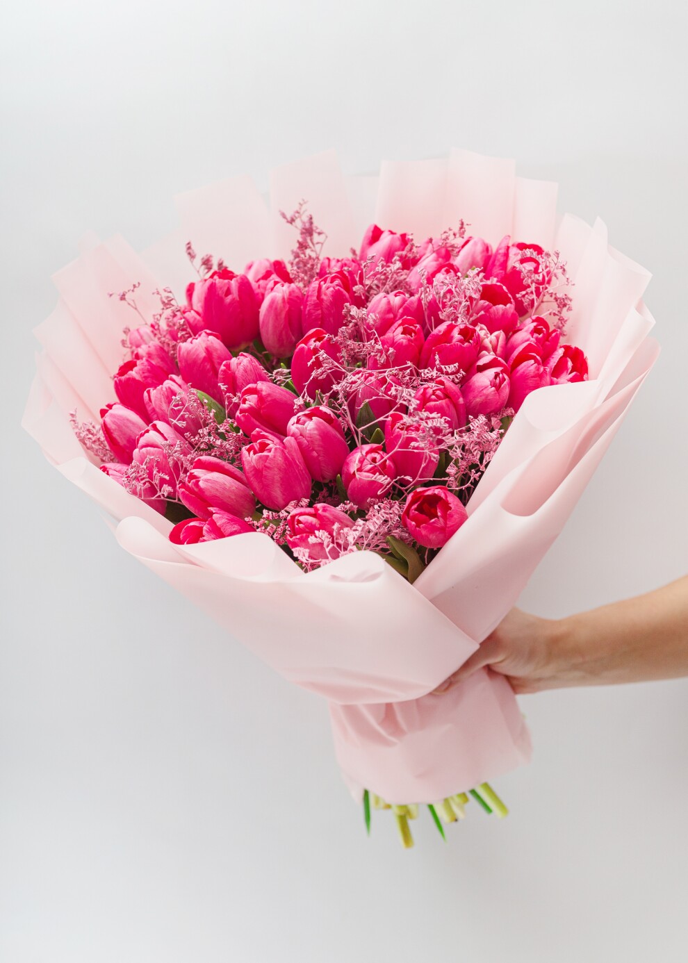 Обратите внимание: Тюльпаны имеют выраженную сезонность (преимущественно весенний период). В остальное время года наличие конкретных сортов и актуальную стоимость просим уточнять у менеджера перед оформлением заказа. Можно собрать разное количество и изменить цвет упаковки. Благодарим за понимание!