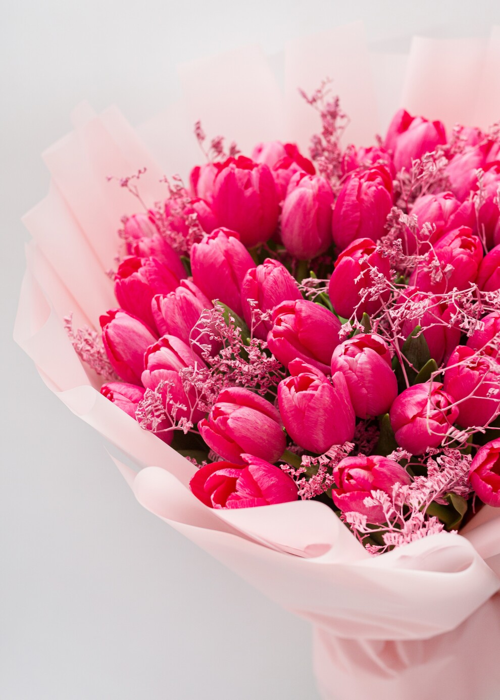Моно-букет из ярко-розовых тюльпанов