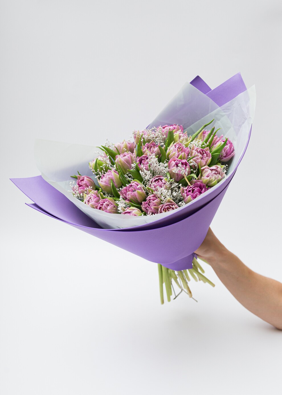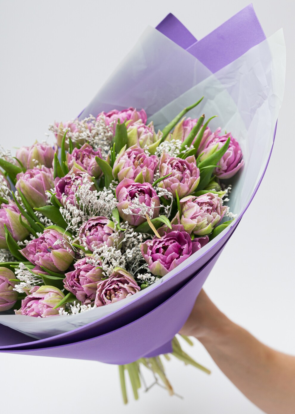 Моно-букет из фиолетовых пионовидных тюльпанов
