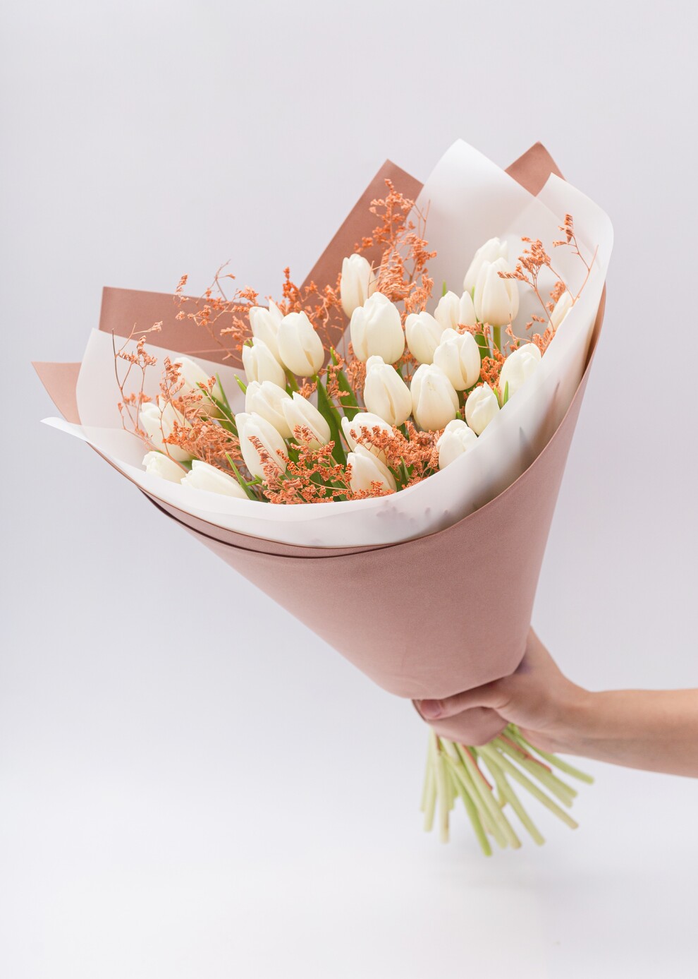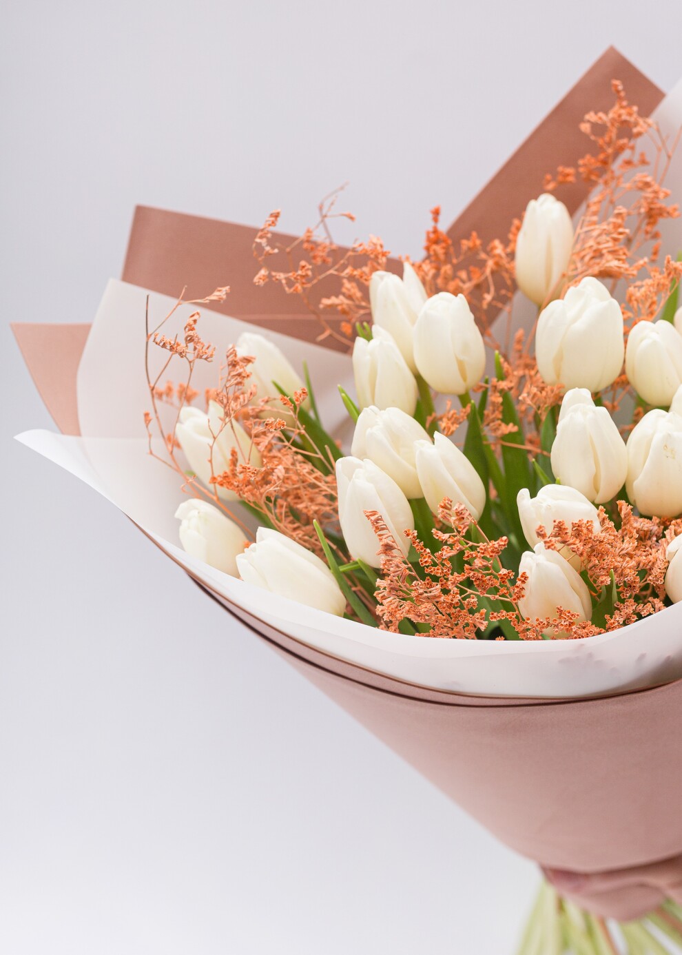 Обратите внимание: Тюльпаны имеют выраженную сезонность (преимущественно весенний период). В остальное время года наличие конкретных сортов и актуальную стоимость просим уточнять у менеджера перед оформлением заказа. Можно собрать разное количество и изменить цвет упаковки. Благодарим за понимание!