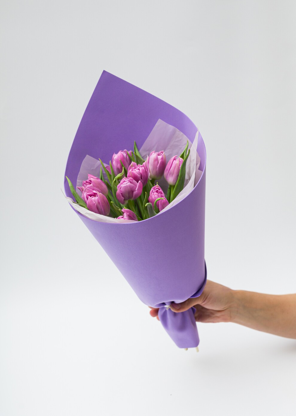 Обратите внимание: Тюльпаны имеют выраженную сезонность (преимущественно весенний период). В остальное время года наличие конкретных сортов и актуальную стоимость просим уточнять у менеджера перед оформлением заказа. Можно собрать разное количество и изменить цвет упаковки. Благодарим за понимание!