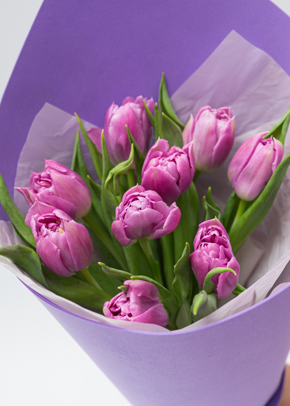 Моно-букет из фиолетовых пионовидных тюльпанов