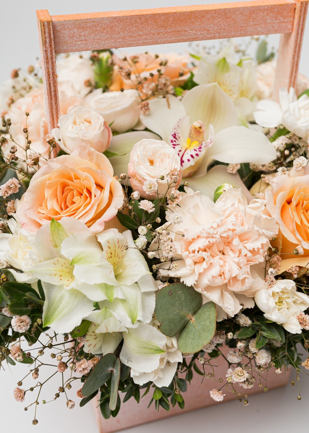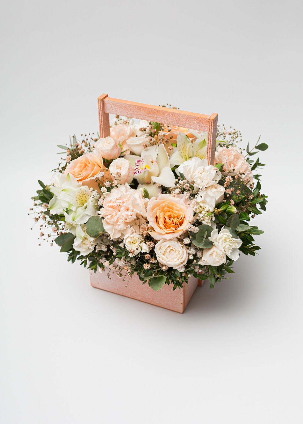 Классическое персиковое сочетание в деревянном ящике